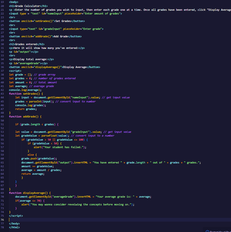 Code Html & Javascript codeHere some sample code of calculating gradesUnity game buildingHere is some game building i did towards the middle of 2025